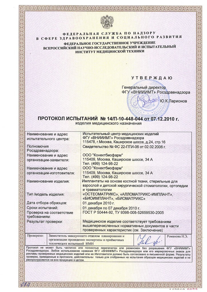 OSTEOMATRIX/ОСТЕОМАТРИКС ОСТЕОИНДУКТОР