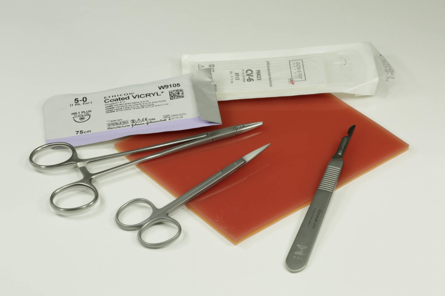 Двухсторонний хирургический шаблон для тренировки наложения швов.